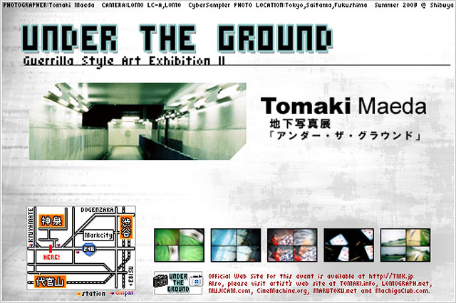 Fotologに投稿していた、LOMO LC-Aと、CyberSamplerという四連写カメラで撮った写真をプリントして、それを展示するという企画なのですが。この写真展はゲリラスタイルで開催されました。とりあえず地下道にババッと写真作品を展示して、それを眺めてニヤニヤして。すみやかに撤収、と。暗がりにまぎれて、当時まだ結婚する前だった嫁さんと一緒に、「早く早く!」と写真を展示。楽しかったですよ。